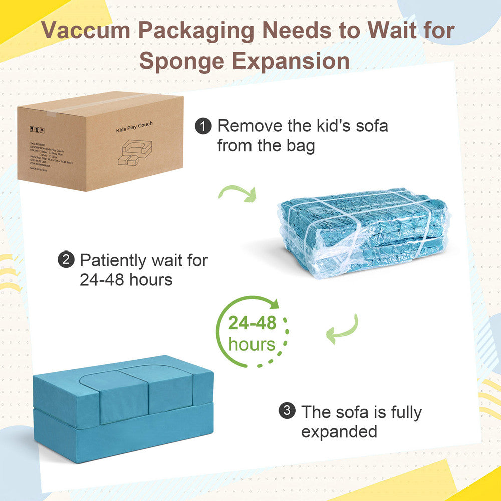 - 8. Vacuum Packaging: It takes just a couple of days to expand after taking the Modular Kids Play Couch out of the package.