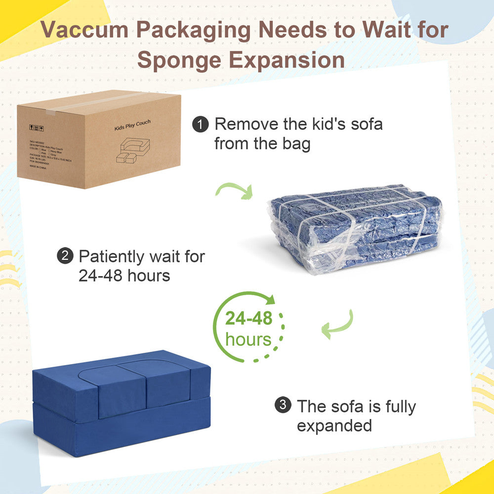 - 8. Vacuum Packaging: It takes just a couple of days to expand after taking the Modular Kids Play Couch out of the package.