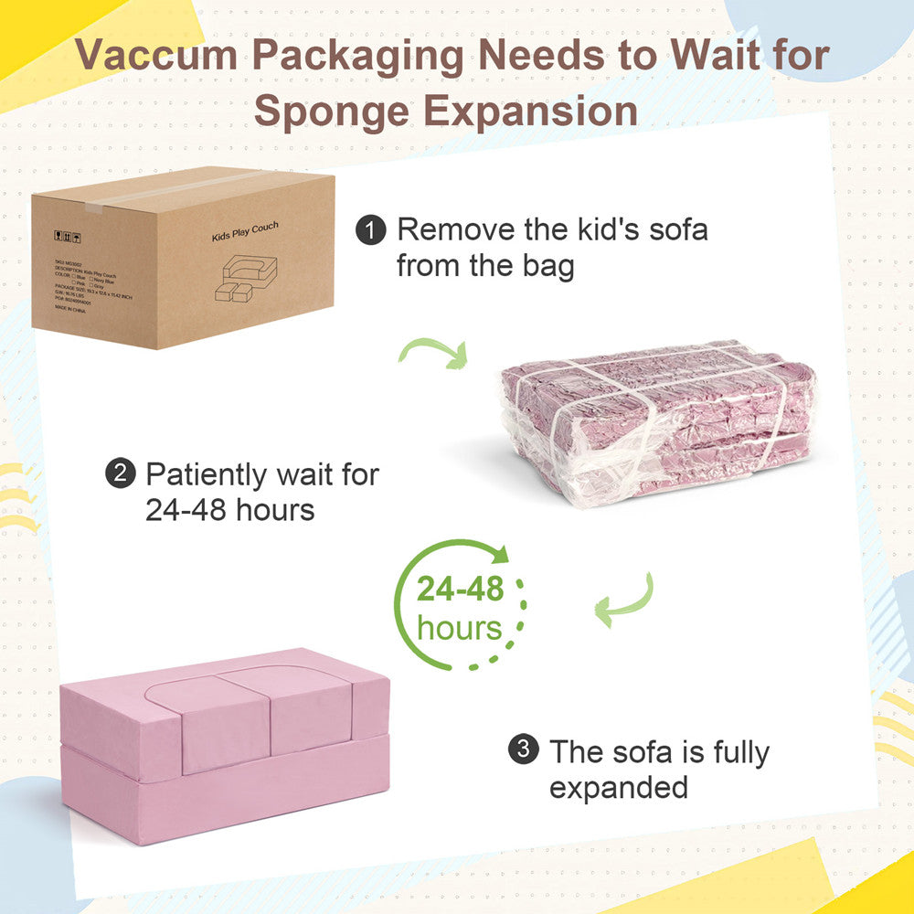 - 8. Vacuum Packaging: It takes just a couple of days to expand after taking the Modular Kids Play Couch out of the package.