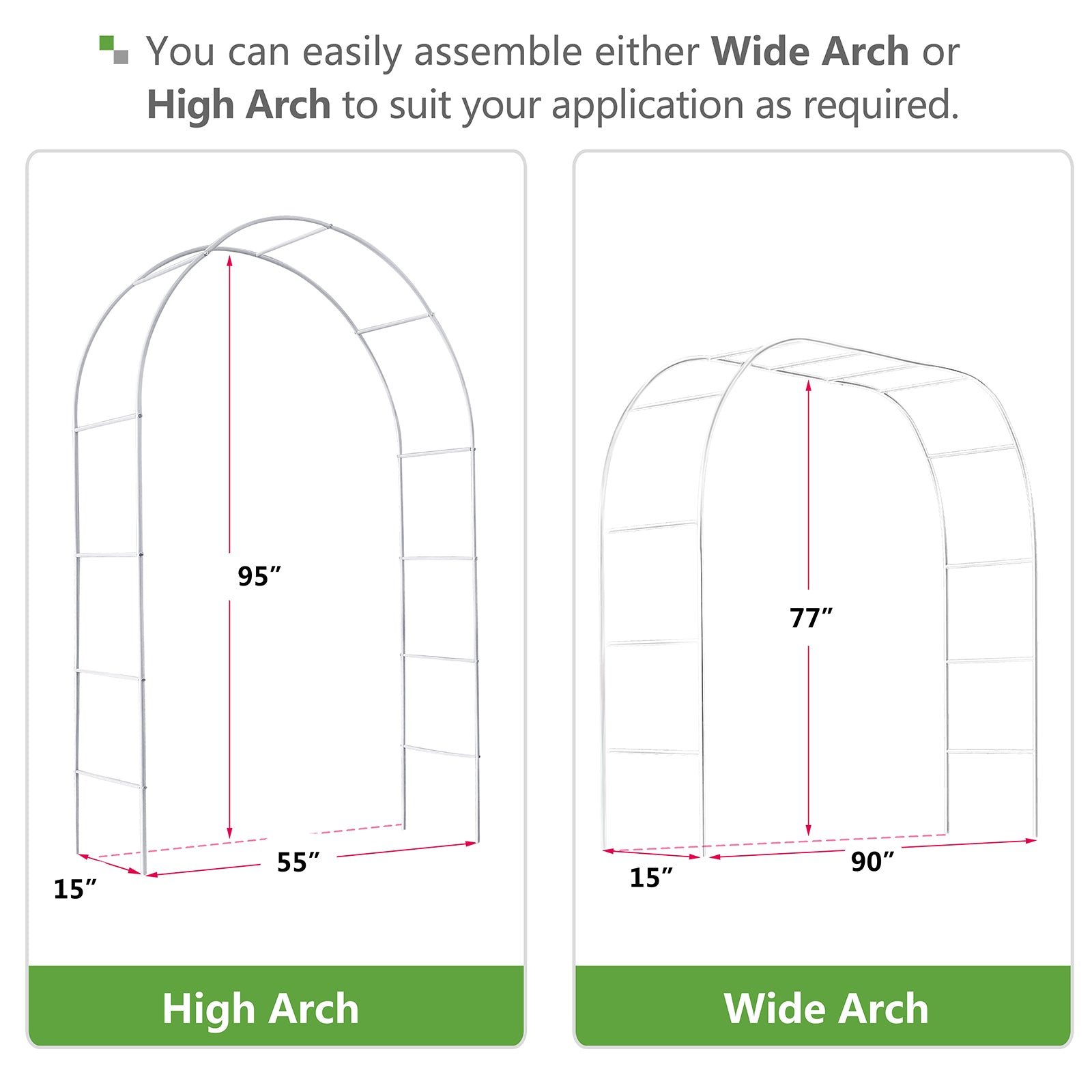 JP OUTDOOR 8ft H Metal Garden Arch Trellis,Arbor Trellis for Climbing Plants Support or Wedding Decor,White