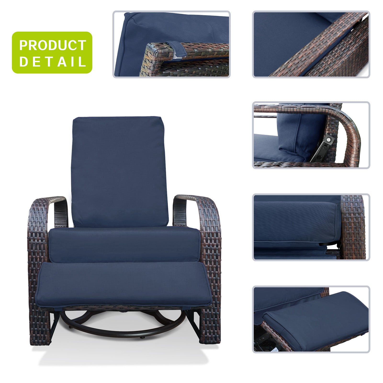 JP OUTDOOR All-Weather Resin Wicker Swivel Rocker Recliner Chair, for Garden Patio Outdoor, Navy Blue