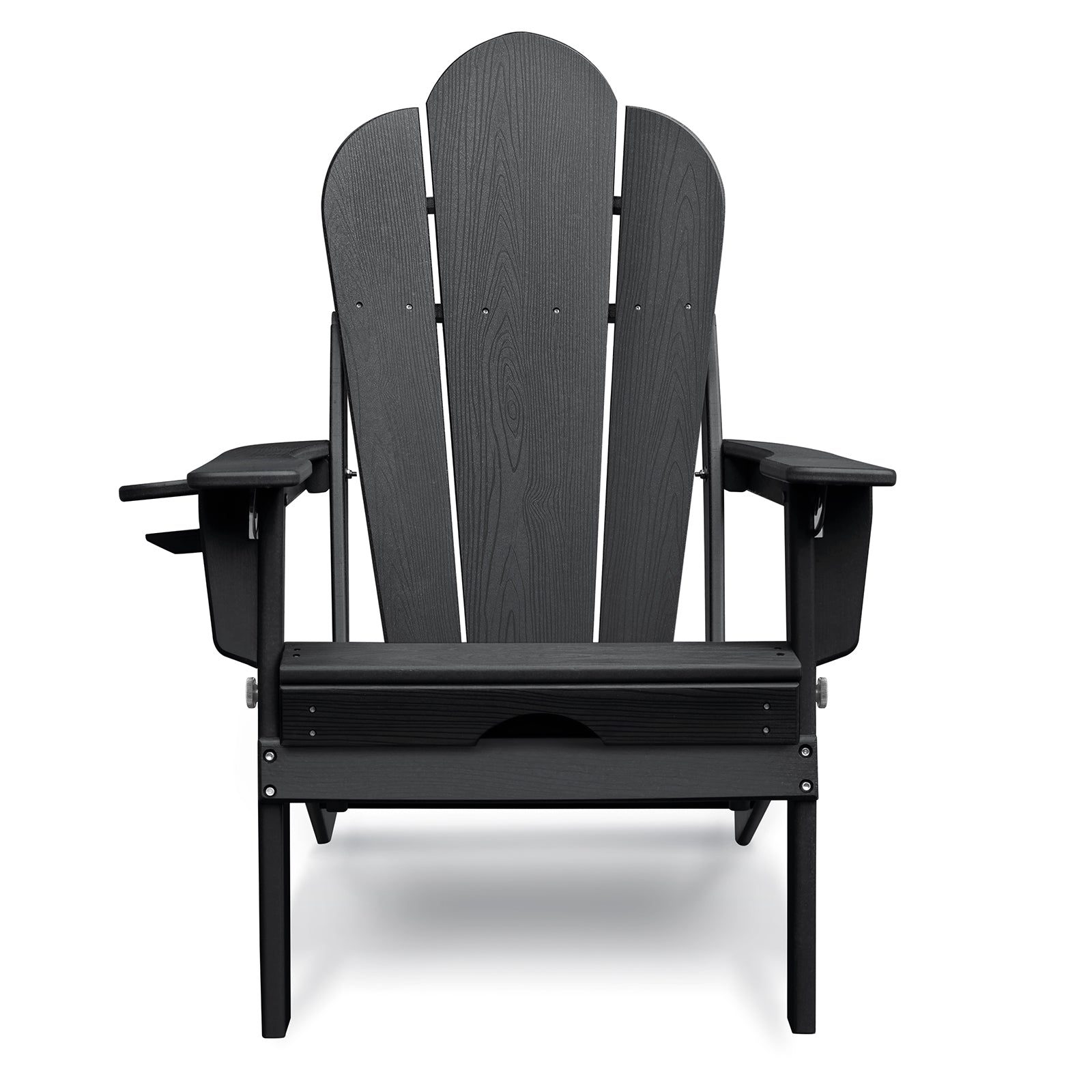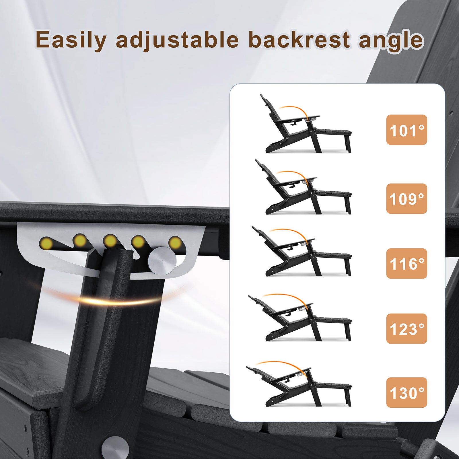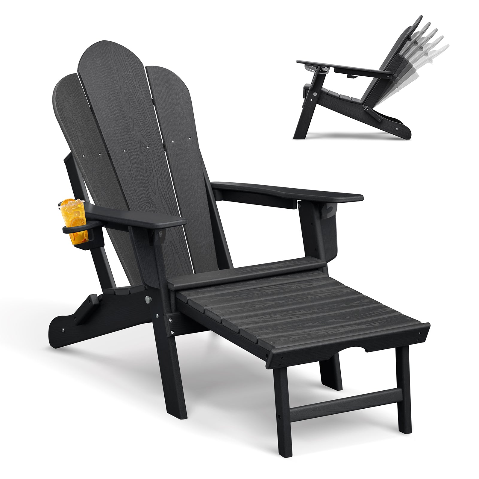JP OUTDOOR Folding Adjustable Adirondack Chair with Ottoman & Cup Holder,HDEP Multifunctional Adirondack Chair with Footrest,Black