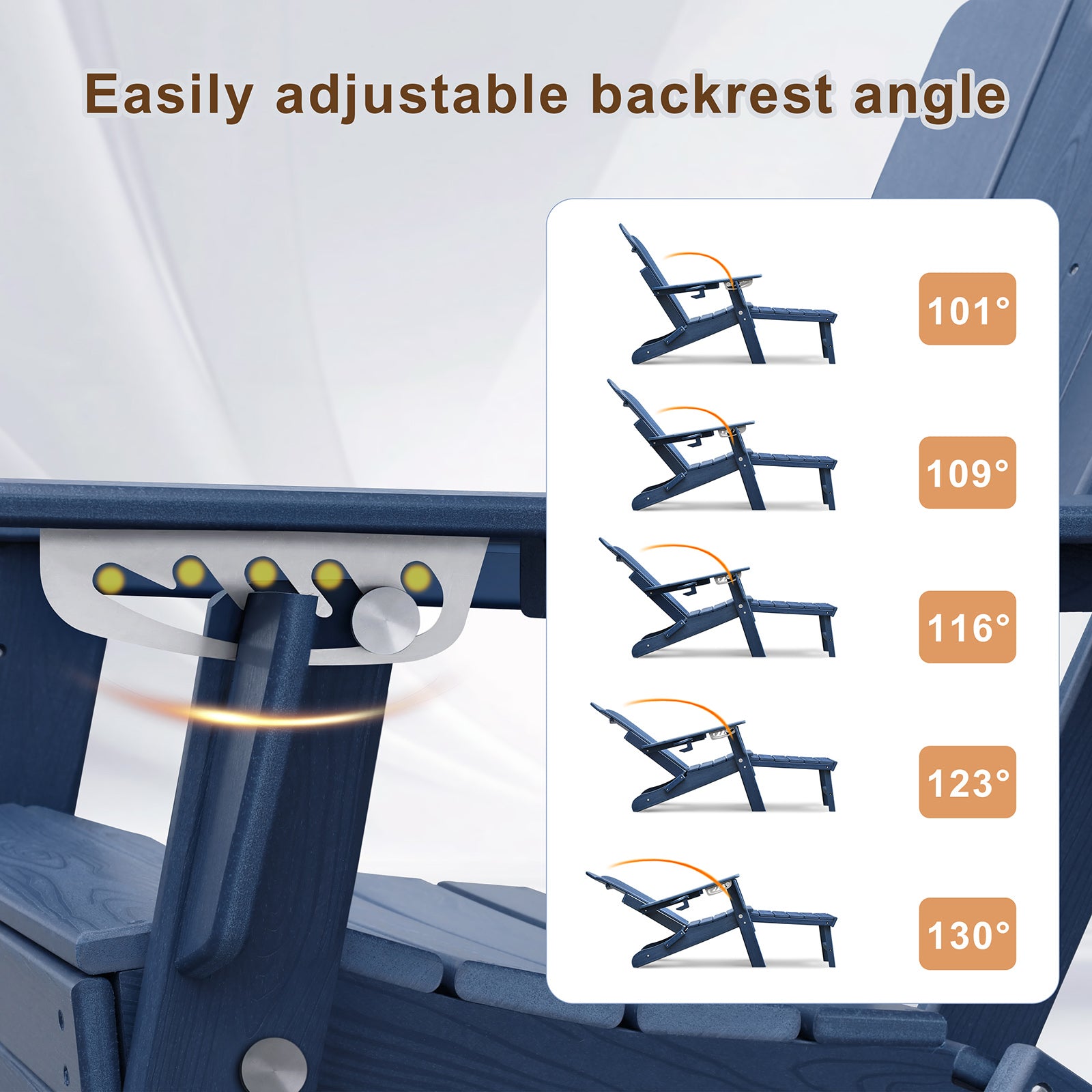 - 2. Adjustable backrest that can be set to 5 angles.