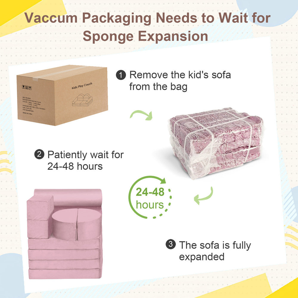 - 8. Vacuum Packaging: It takes just a couple of days to expand after taking the Modular Kids Play Couch out of the package.