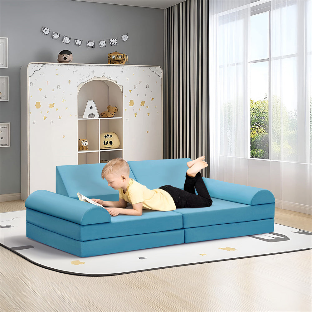 JP Outdoor Modular Kids Play Couch, 8PCS Nugget Couch for Building Fort, Toddler Play Sponge Convertible Couch,Blue