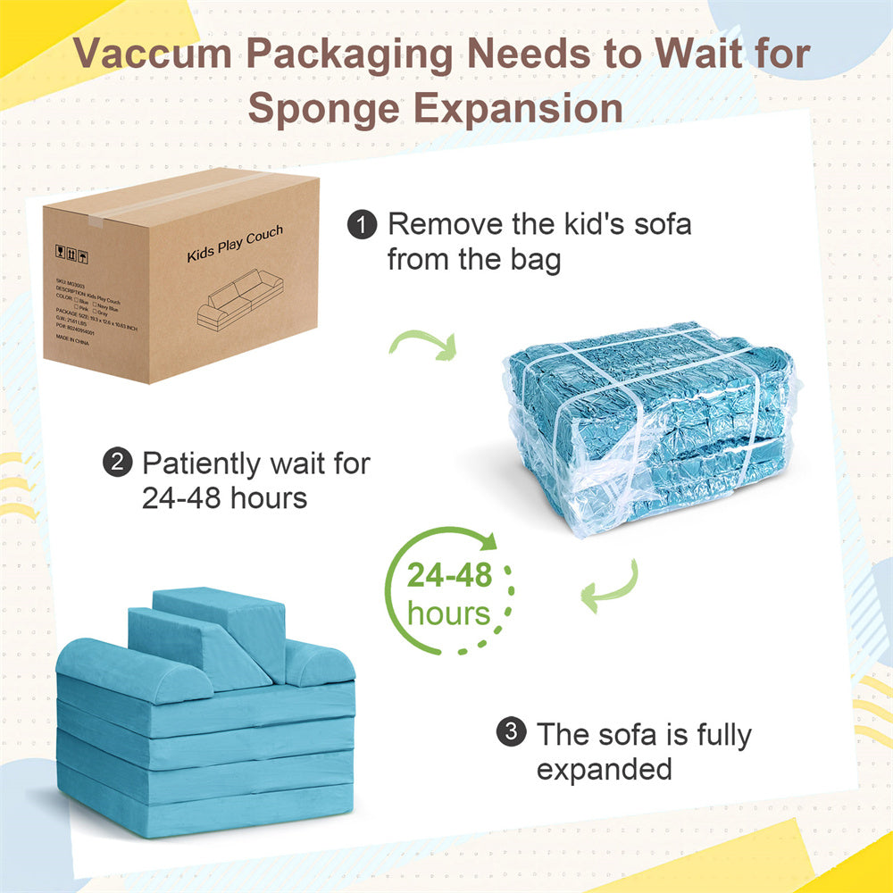 - 8. Vacuum Packaging: It takes just a couple of days to expand after taking the Modular Kids Play Couch out of the package.