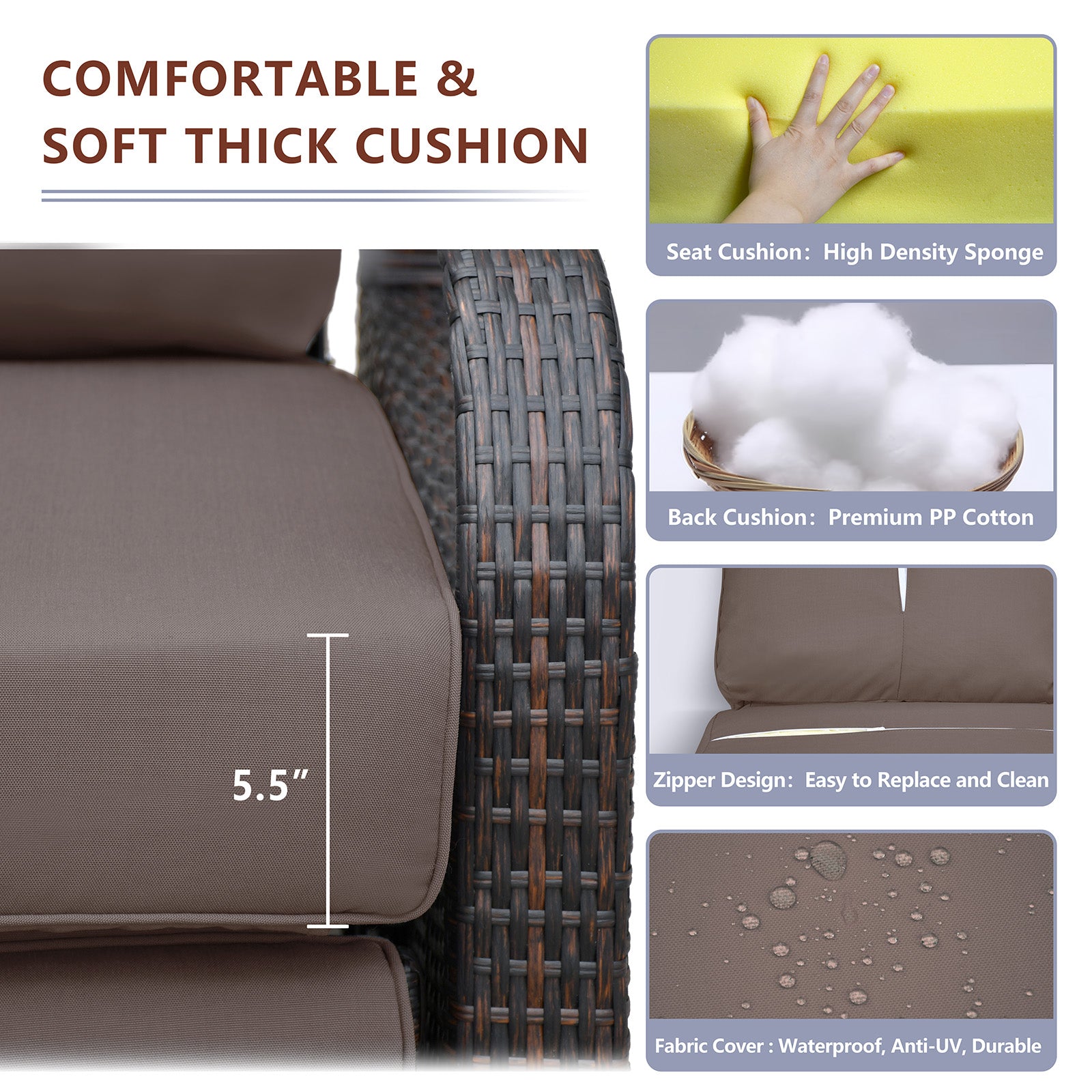 4. High-density polyethylene (HDPE) resin rattan wicker, 3000 hours 5.UV Thick cushion is waterproof and UV-protected