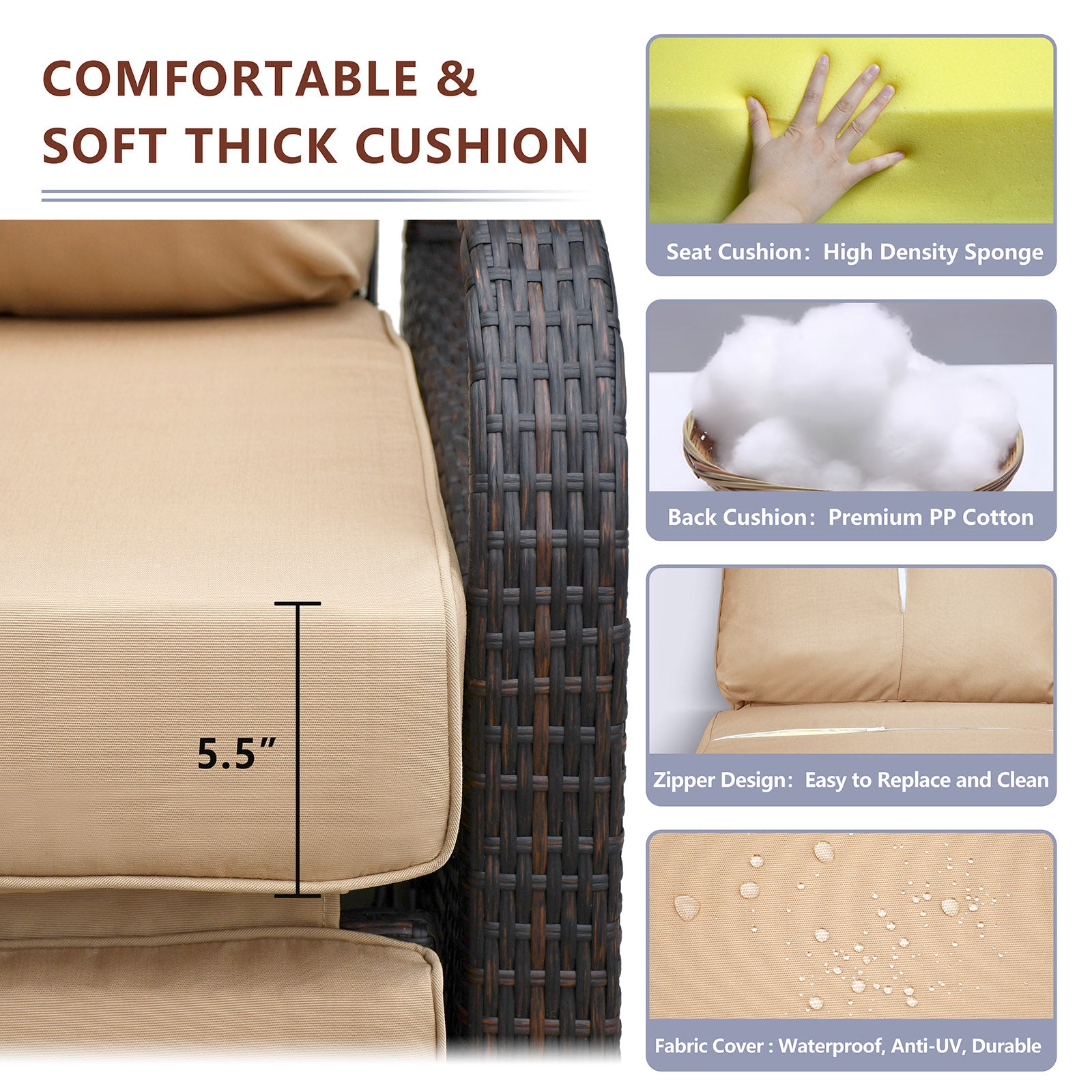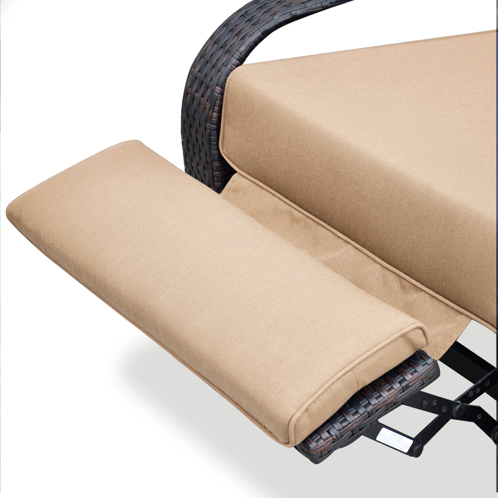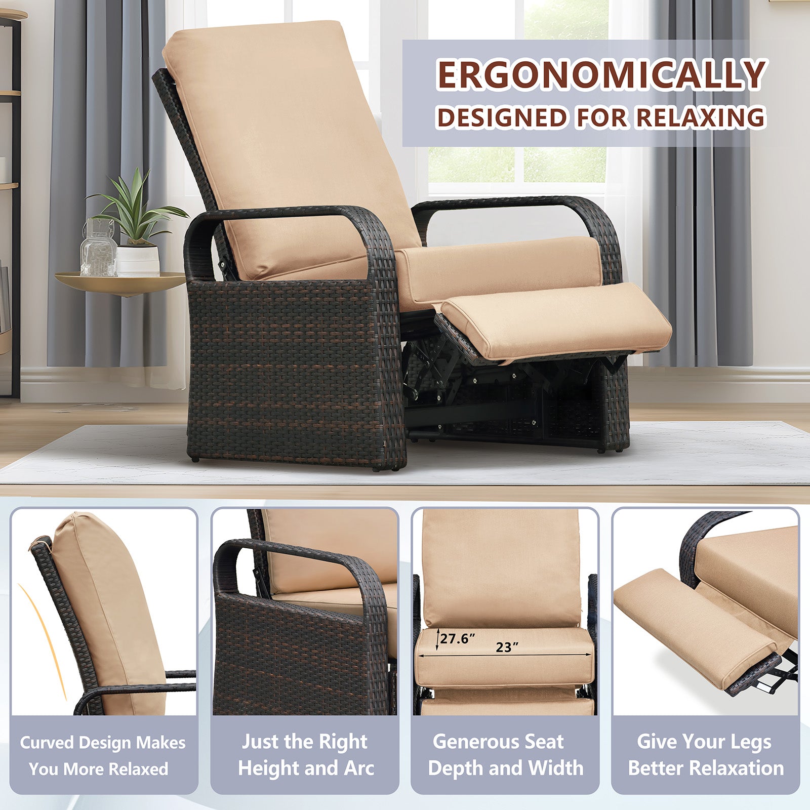 JP Outdoor Outdoor Durable Hand-woven Wicker Recliner Chair with Fade Resistant Cushion, Khaki