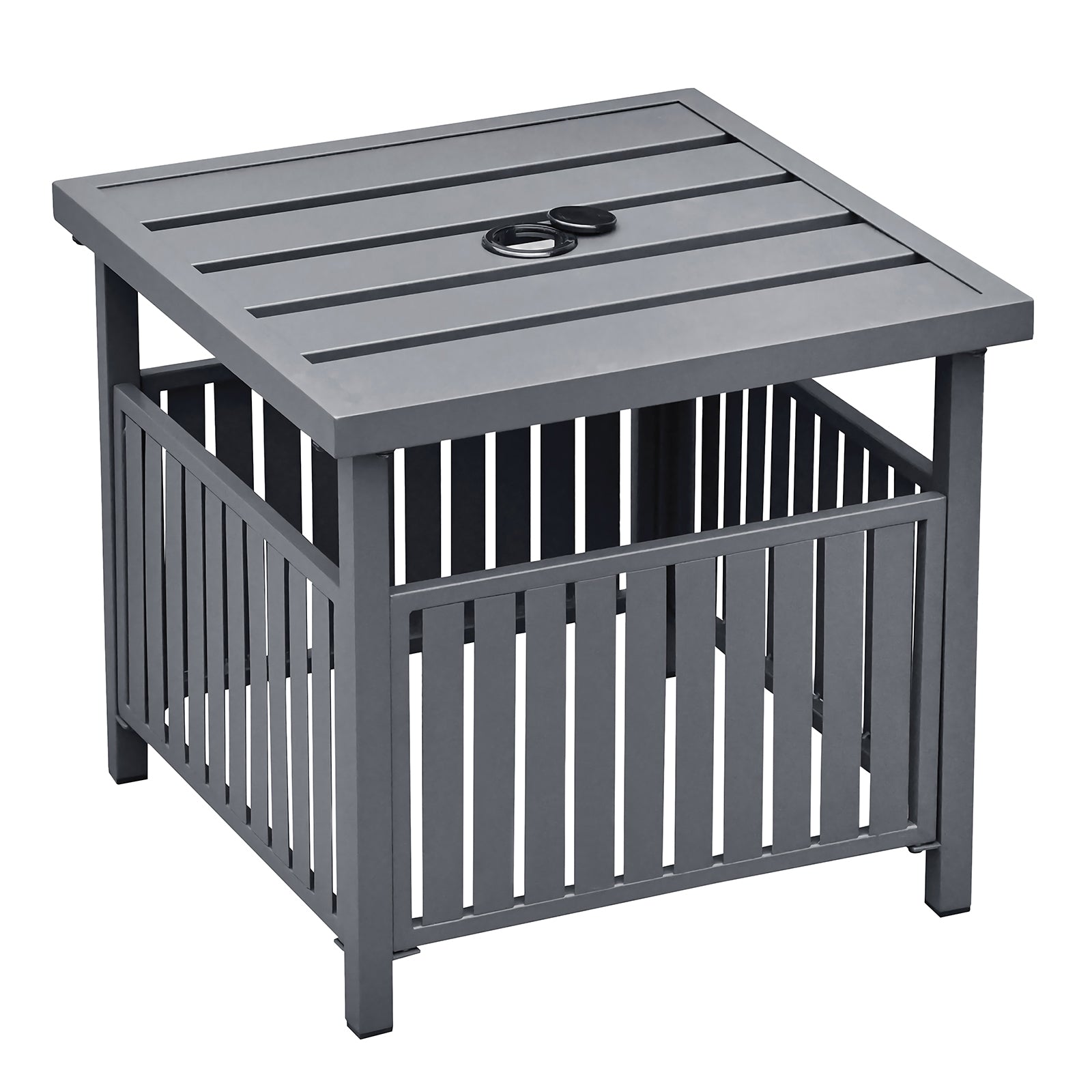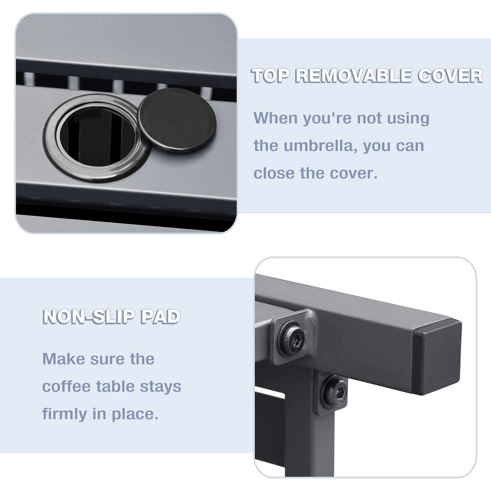 Side table with umbrella base hole is a simple and elegant addition to any outdoor setting, ideal for your porch, poolside, deck, garden or wherever you need it. The sturdy rust-free metal steel table provides a hard surface for outdoor tables and a durable rust and weather-resistant steel frame that enhances the quality of your outdoor life. With the design of an umbrella hole, you can have a great outdoor experience even in summer.
